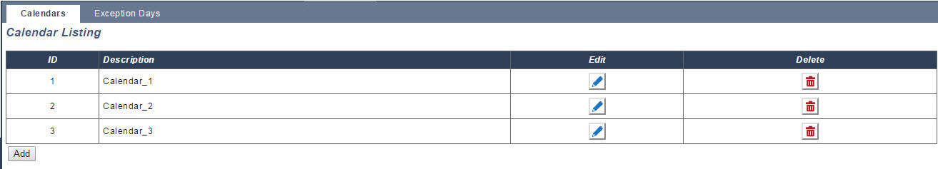 - Select Configuration > Calendars > Exception Days > Add.