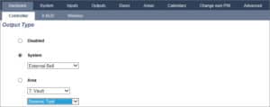 The output can be assigned to either the system or an area if the panel is configured to use areas as is usually the case in financial environments. The output should only be assigned to the system if the panel does not use areas.