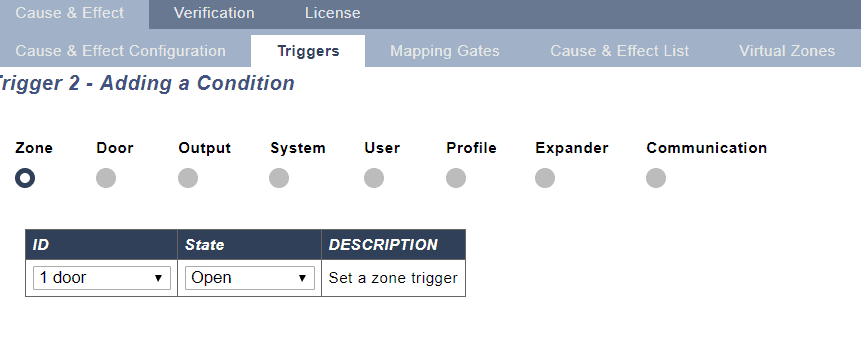 The Advanced programming features of SPC allows you to define custom outputs which can be used to control almost all elements of the system. The logic is simple an intuitive first choose your conditions when you wish something to happen and then to define what action should be taken. This programming logic referred to in SPC as cause and effect or C&E.