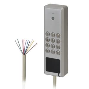 Keypad and reader, which is suitable for internal & external applications, surface mounted. The device has two input features; numeric code and electronic coded card or fob, VdS approved G115050.