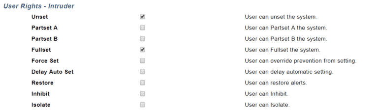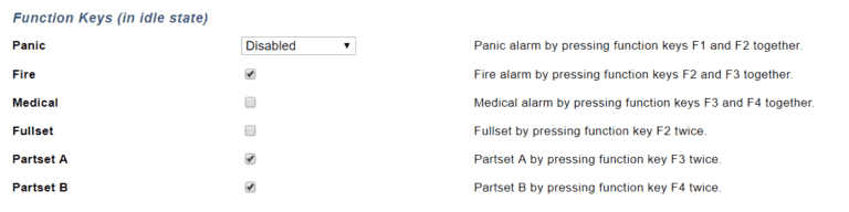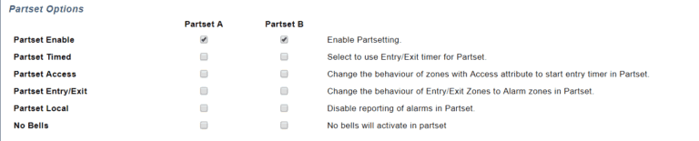 Part sets allow for the protection of the perimeter or a selected area of a building. The SPC allows for two part sets per area, you can define the name of this element and also how they operate.