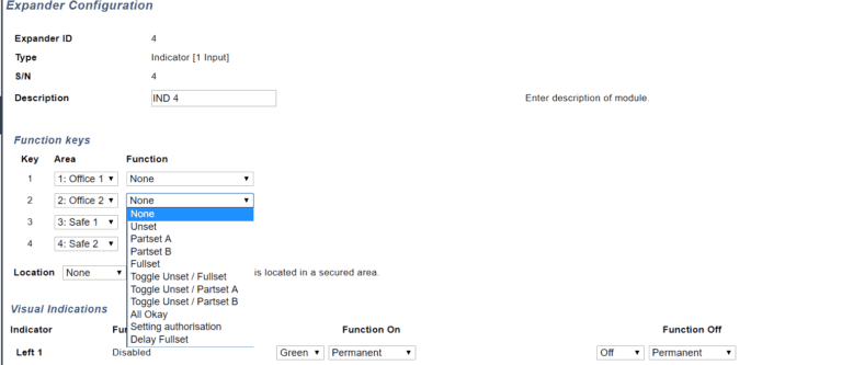 The buttons on the indication module can be configured to perform many tasks, a button can be configured to Part Set an area or alternatively to toggle between Part Set and unset.