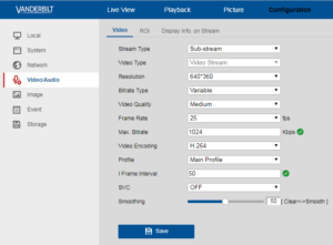 Vanderbilt Camera 1 was directly on the network so I used Stream 1 and the settings below: