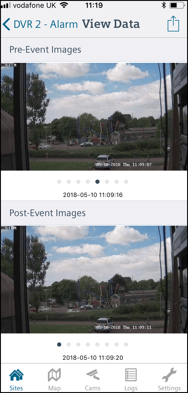 When the zone has triggered a snapshot of the video is taken with Pre & Post events.