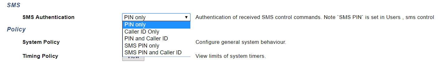 You may configure as an optional step the ability to control the system via SMS. You should consider the security of the system when configuring this option as you are allowing remote control of the system. When an SMS is received the system can authenticate the message in a number of ways