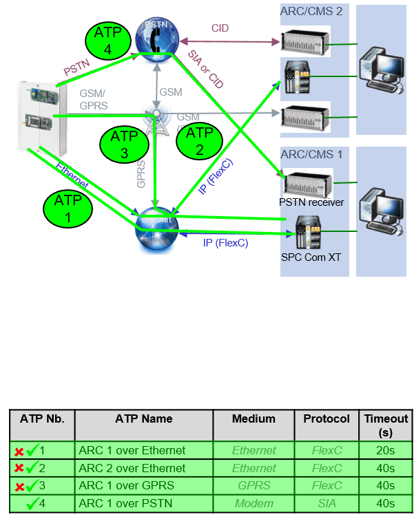 ATS1: Triple path communication (Ethernet with GPRS/PSTN backup) to ARC with multiple receivers