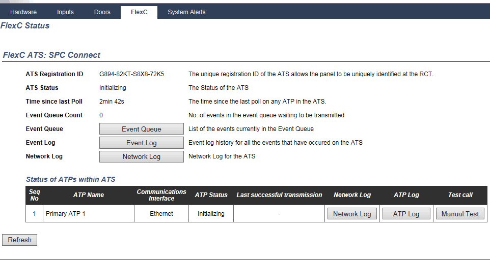 The SPC panel should not start communication with SPC connect and view the Status -> FlexC you should see the connection status will start by initializing and then say communications are OK