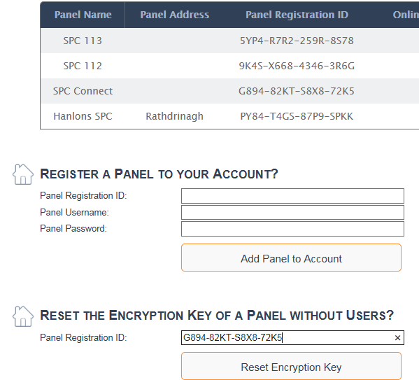 - If communications do not come online we will now reset the communications on the SPC connect server. To resolve the Encryption issue, check your account on the SPC Connect server and verify that the registration ID is available. Put the Registration ID into the box shown below and click on the “Reset Encryption Key” button. If you cannot see the Registration key in your account try the same process.