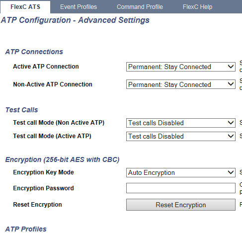 - Access the SPC web page and select the FlexC configuration and the SPC connect ATS. Each ATP has its own dedicated encryption key so make sure you select the correct ATP for the SPC Connect portal. Go into advanced setting for the ATP and click on the Reset encryption button. Again if this does not work then the problem is the connection between the panel and the SPC Connect portal is broken. Check the cable link from the SPC controller to the switch and router. This can easily be dome by a simple ping command to the router gateway address. If you get a good reply then the connection is intact. If you do not, then check all physical links.
