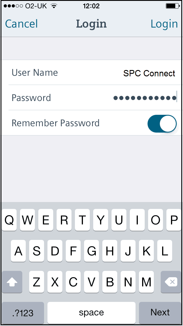 Load the SPC Connect App on your device and tap the Icon