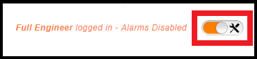 The Engineer will now be logged on as Full Engineer and the text and button will turn Orange to confirm.