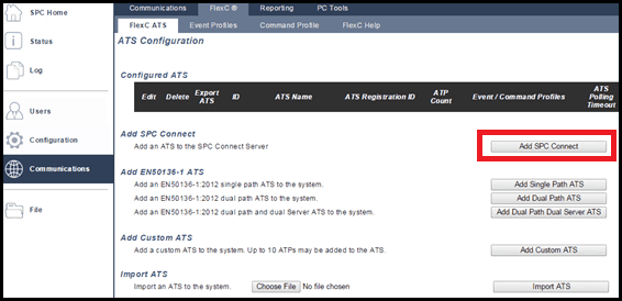 Communications > FlexC > FlexC ATS > Add SPC Connect